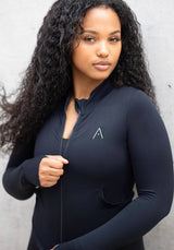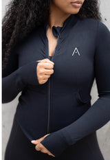 Our Athletic Zip Up Jacket is perfect for any athleisure look. Made from a soft fabric, this sleek jacket features thumb holes for a more secure and tight feel. Get ready to look and feel your best while you work out or hang out!